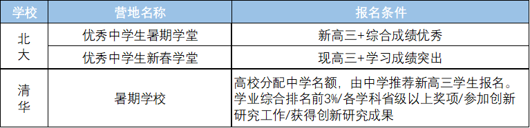 根据往年的情况,清华、北大每年都会举办各种夏令营、秋季营等各类营,提前物色一批竞赛成绩优异,或是课内成绩突出的学生,并给予他们一定的分数优惠。